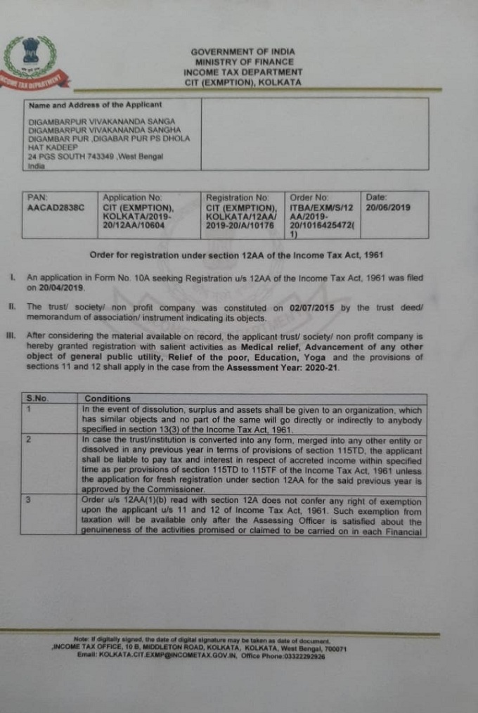 Document Gallery Registration Certificate 12A Certificate 80G Certificate digambarpurvivekanandasangha@gmail.com +91 97344 59643 Vill+P.O-- Digambarpur , P.S- Dholahat, Dist- 24 P.G.S (S), West Bengal, Pin- 743349